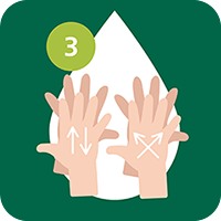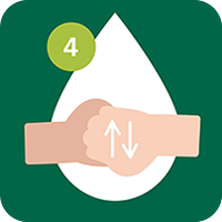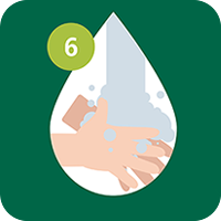 5. Oft werden die Daumen vergessen, deswegen: Umschließe einen Daumen mit der anderen Hand, reiben ihn gründlich mit Seife ein und wiederholen dasselbe für den zweiten Daumen. Der gesamte Waschvorgang sollte 20-30 Sekunden dauern. Wichtig sind auch die Handgelenke. Hierfür forme mit der einen Hand einen Kreis und umschließe damit deine andere Hand. Bewege nun die umschlungene Hand mit einer Hin- und Her- Bewegung. Das gleiche Vorgehen für die andere Hand wiederholen.